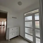 The apartment offers an adjoining terrace and a fully equipped kitchen with views of the garden and comforts like an air conditioner and a washing machine. For added convenience, a separate toilet and a shower are available at the property.